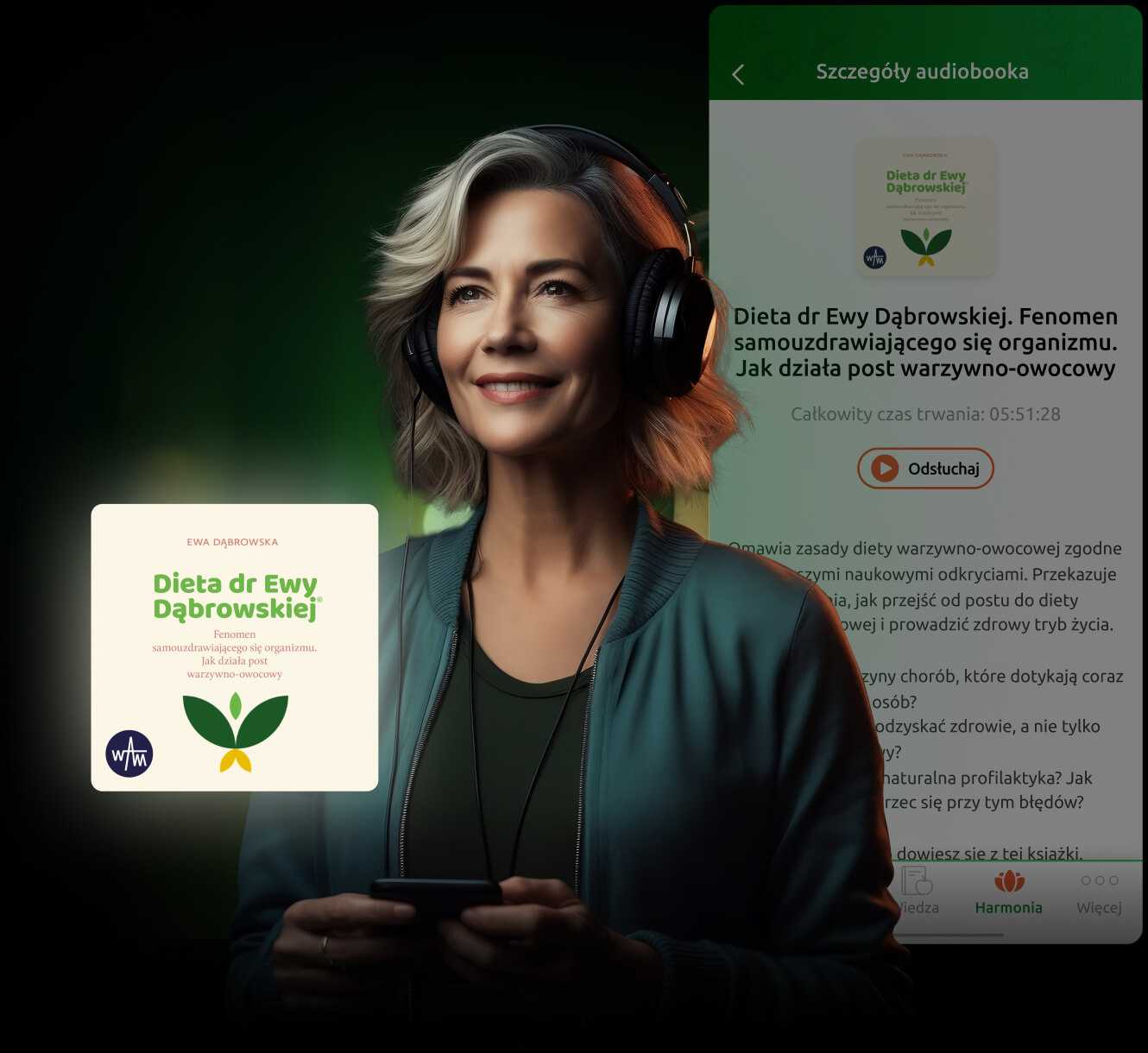 Harmonia to nowość, z którą zadbasz nie tylko o fizyczny, ale także duchowy wymiar swojej zdrowej przemiany. Z podcastami i audio poradami w prosty sposób zwiększysz wiedzę dotyczącą zdrowego stylu życia. A ćwiczenia oddechowe, relaksujące dźwięki natury i fragmenty Pisma Świętego przyniosą Ci wyciszenie oraz czas na refleksje.